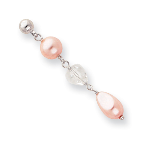 Rhodium-plated Pink Glass Pearl and Crystal Drop Earrings