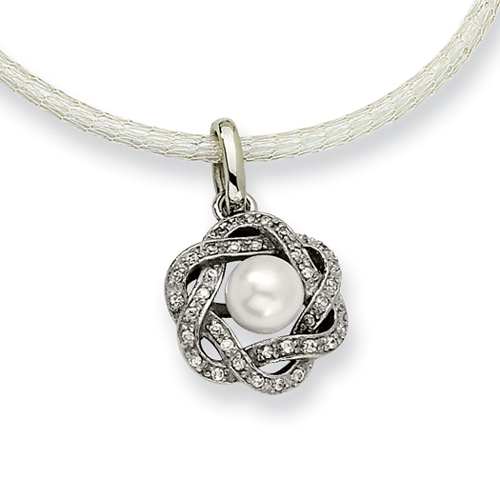 Stainless Steel Cultured Pearl & Cubic Zirconia Pendant