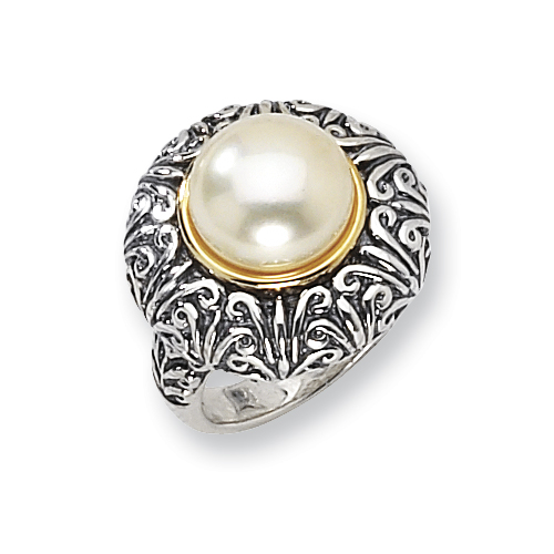 Sterling Silver/14ky 12mm White FW Cultured Pearl Ring