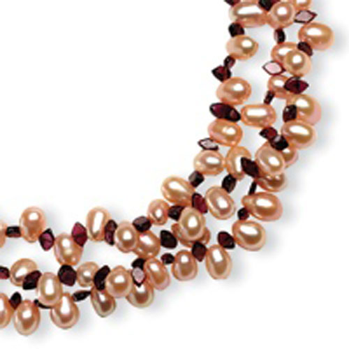 Picture of Sterling Silver 7.5-8.5mm Freshwater Cultured Pink Pearl & Garnet Necklace