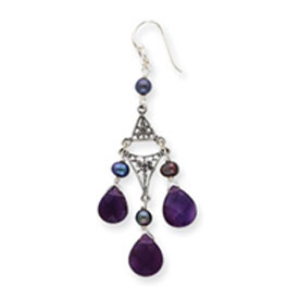 Picture of Sterling Silver Amethyst & Freshwater Cultured Peacock Pearl Earrings