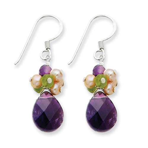 Picture of Sterling Silver Amethyst/Peridot/Peach Cultured Pearl Earrings