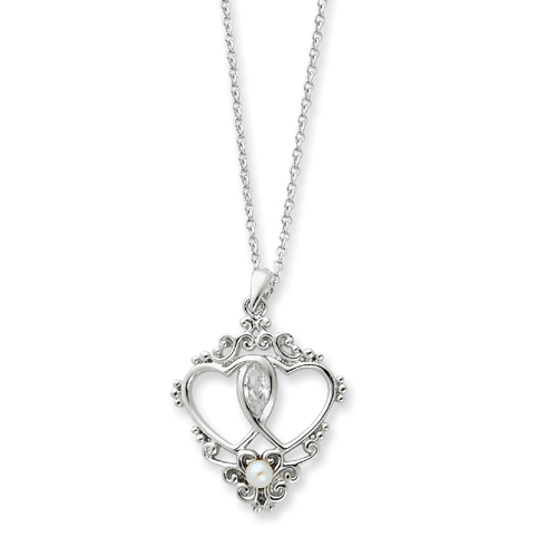 Sterling Silver Antiqued Two Hearts, One Love 18" Heart Necklace