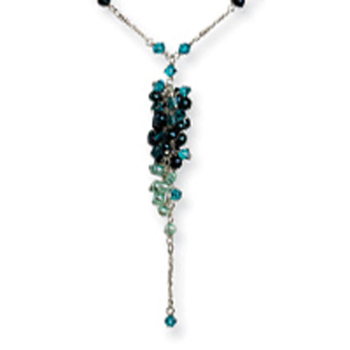 Sterling Silver Blue Crystal, Freshwater Cultured Pearl Necklace
