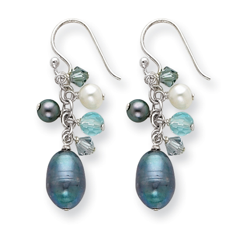 Sterling Silver Blue Crystals/Peacock & White Cultured Pearl Earrings