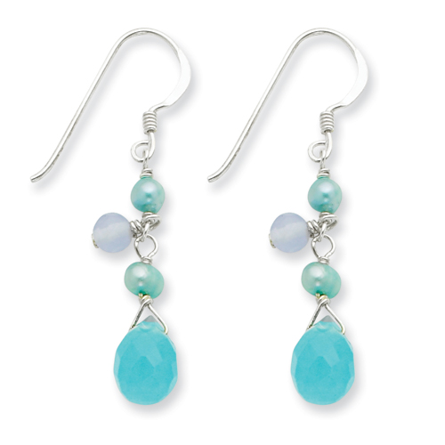 Sterling Silver Blue Topaz/Agate/Blue/Cultured Pearl Earrings
