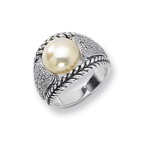 Picture of Sterling Silver Diamond and 11mm White FW Cultured Pearl Ring