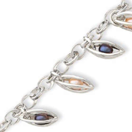 Sterling Silver Floating Mixed Pearl Dangle Bracelet