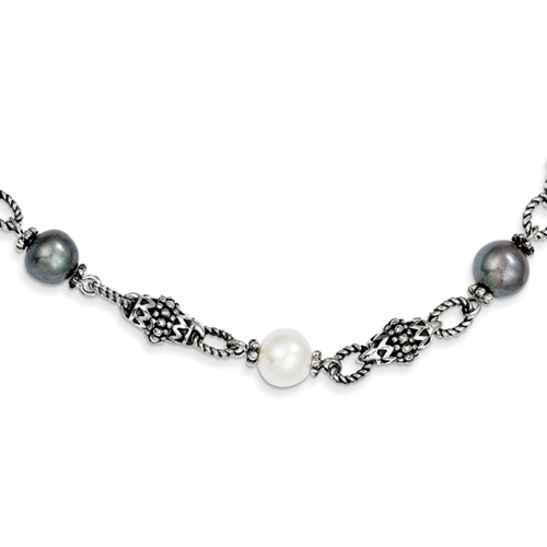 Sterling Silver Freshwater Cultured Black & White Pearl Necklace