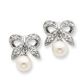 Sterling Silver Freshwater Cultured Pearl Cubic Zirconia Post Earrings