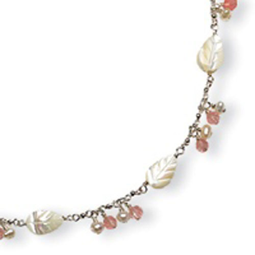 Sterling Silver Freshwater Cultured Pearl, Mother Of Pearl & Cherry Quartz Necklace