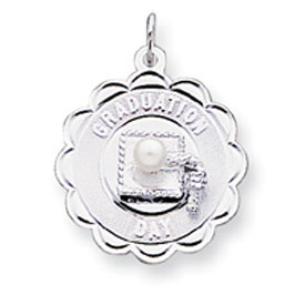 Sterling Silver Graduation Day Disc with Cultured Pearl Charm