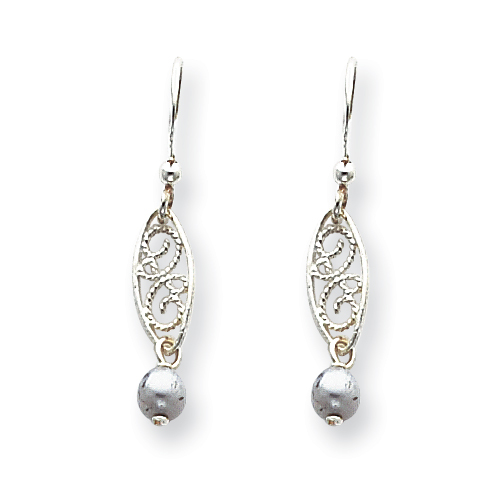 Sterling Silver Gray Cultured Pearl Filigree Dangle Earrings