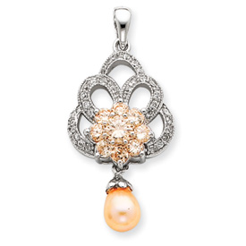 Picture of Sterling Silver Imitation Pearl And CZ Pendant