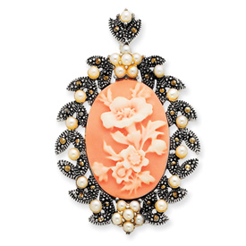 Picture of Sterling Silver Marcasite Simulated Pearl Cameo Slide