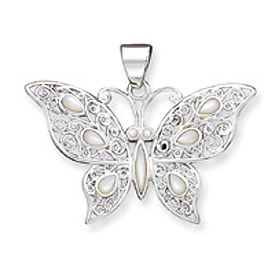Picture of Sterling Silver Mother Of Pearl Fancy Butterfly Pendant