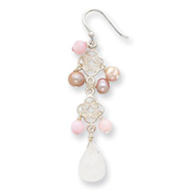 Sterling Silver Rose Quartz, Pink Agate, Freshwater Cultured Pearl Earrings