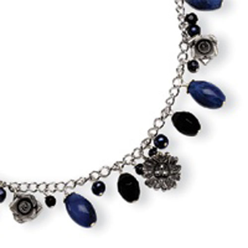 Sterling Silver Sodalite, Blue Goldstone, Black Crystal, Cultured Pearl Necklace
