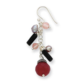 Sterling Silver Strawberry, Cherry Quartz, Hemitite, Freshwater Cultured Gray Pearl Earrings