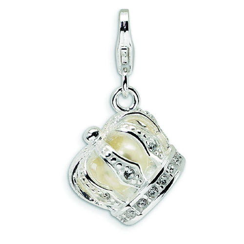 Sterling Silver Swarovski Crystal & Fresh Water Cult Pearl Crown With Lobster Charm