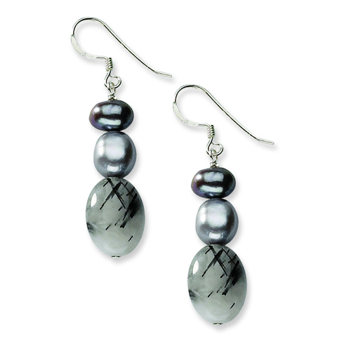 Sterling Silver Tourmalinated Quartz & Grey Freshwater Cultured Pearl Earrings