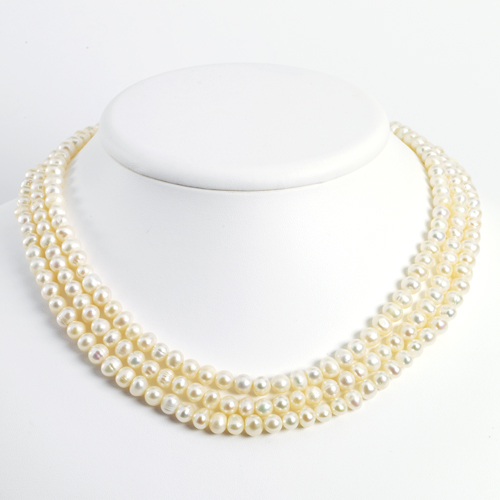 Sterling Silver Triple Strand White Freshwater Cultured Pearl Necklace chain