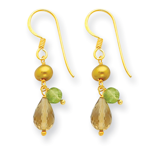 Sterling Silver & Vermeil Lemon/Golden Cultured Pearl/Periodot Earrings