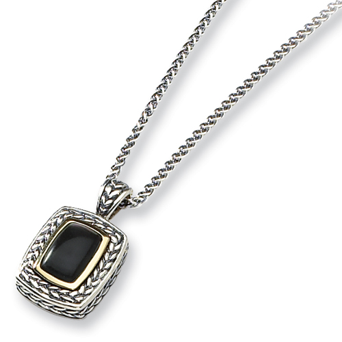 Picture of Sterling Silver w/14k Black Mother of Pearl Antiqued 18in Necklace