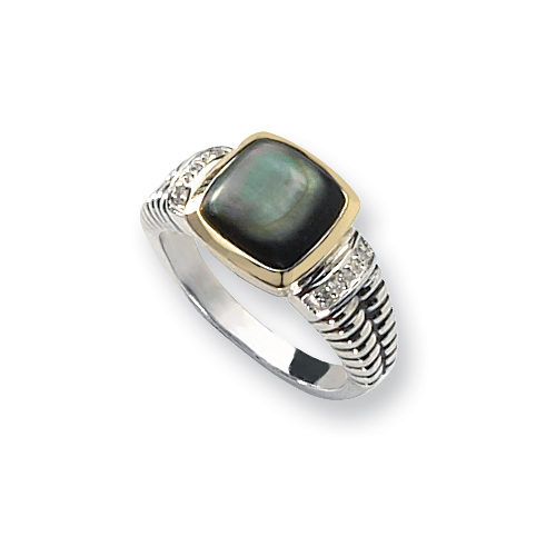 Sterling Silver w/14k Diamond & Black Mother of Pearl Ring