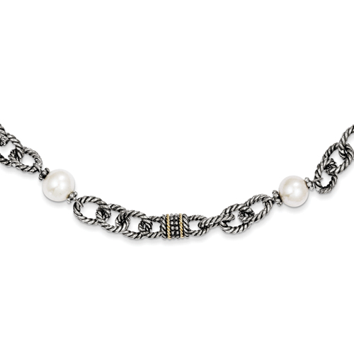Sterling Silver w/14ky Freshwater Cultured Black Pearl Antiqued Necklace