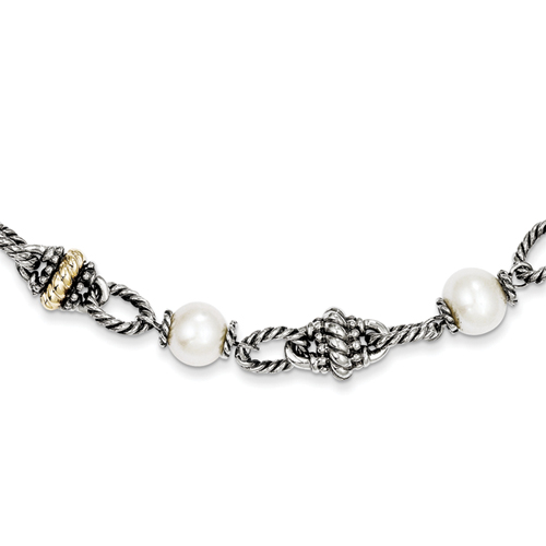 Sterling Silver w/14ky Freshwater Cultured Pearl Necklace