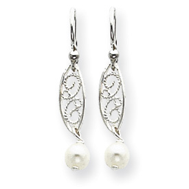 Sterling Silver White Cultured Pearl Filigree Dangle Earrings