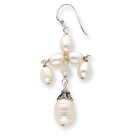 Sterling Silver White Pearl, Quartz Earrings