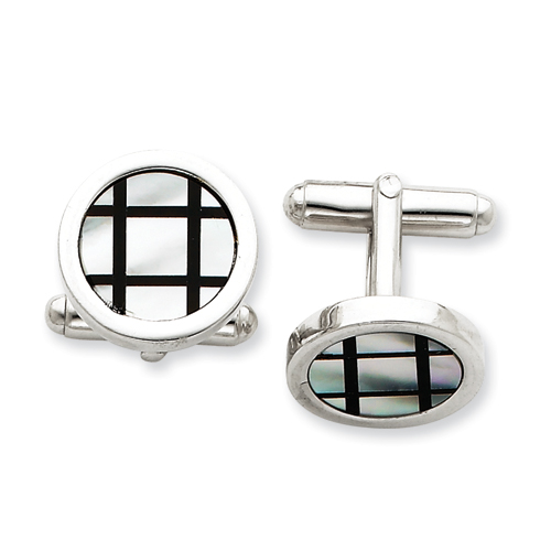 Picture of Sterling Silver with Mother of Pearl and Black Enamel Cuff Links
