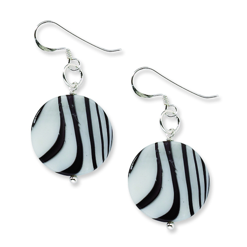 Sterling Silver Zebra Print Mother Of Pearl Disc Earrings