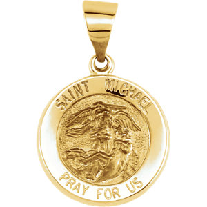 14kt Yellow Pendant Complete No Setting 14.75 MM Polished ROUND HOLLOW ST. MICHAEL MEDAL