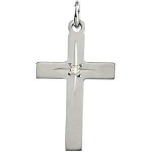 14kt White 13.00X09.00 MM Polished CROSS PENDANT W/DIAMOND