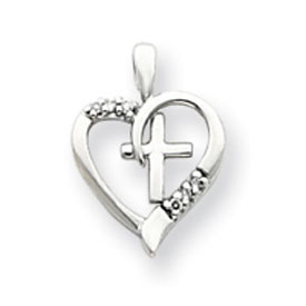 Picture of 14K Gold AA Diamond Heart & Cross Pendant
