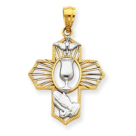 14K Gold & Rhodium Cross Pendant