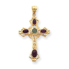 14K Gold Ruby & Emerald Cabochon Cross Pendant