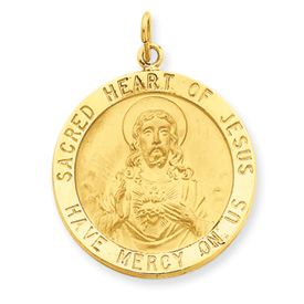 14K Gold Sacred Heart of Jesus Medal Pendant