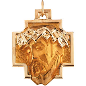 14K Yellow Gold Head Of Jesus With Crown Cross Pendant