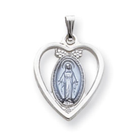 Sterling Silver Heart Blue Epoxy Miraculous Medal