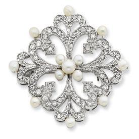 Sterling Silver Freshwater Pearl & CZ Pin