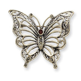 Picture of Sterling Silver Marcasite Red CZ Butterfly Pin