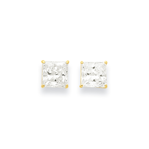 14k 7mm Square CZ Post Earrings