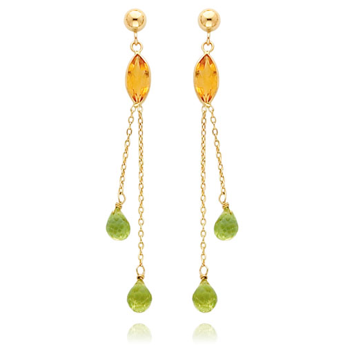 Picture of 14K Gold Citrine And Peridot Post Dangle Earrings