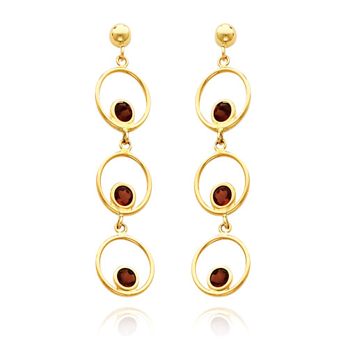 Picture of 14K Gold Garnet Triple Drop Circle  Dangle Post Earrings