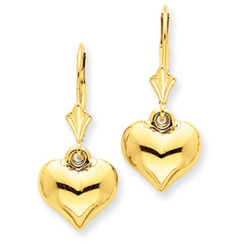 14K Gold Puff Heart Leverback Earrings