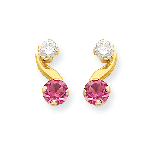 14k Synthetic Pink Tourmaline (Oct) Post Earrings
